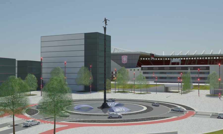 De noordkant van De Grolsch Veste krijgt op korte termijn meer ‘smoel’. Deze maand nog wordt begonnen met de herinrichting van het plein voor NS-station Drienerlo. Daarbij heeft de gemeente, mede op basis van inspraakreacties, gekozen voor het model Forum. Dat voorziet in een nieuwe rotonde, een aanpak van de (te) steile trappen, een vijver en een zuil met kunstwerk.