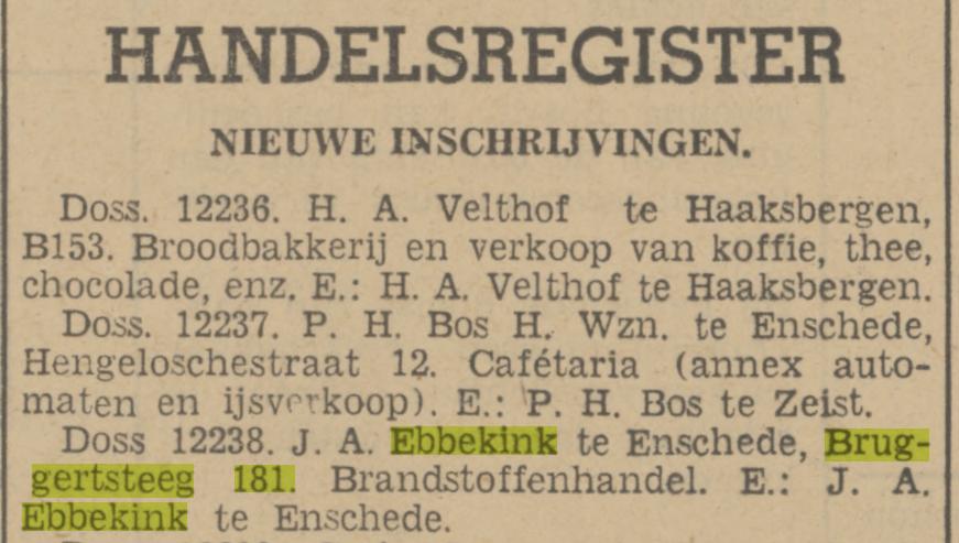 Ebbekink J.A. controleur Bruggertsteeg 181 advertentie 30-12-1939 7-6-1940 later Bruggertstraat 191 advertentie 2-10-1956