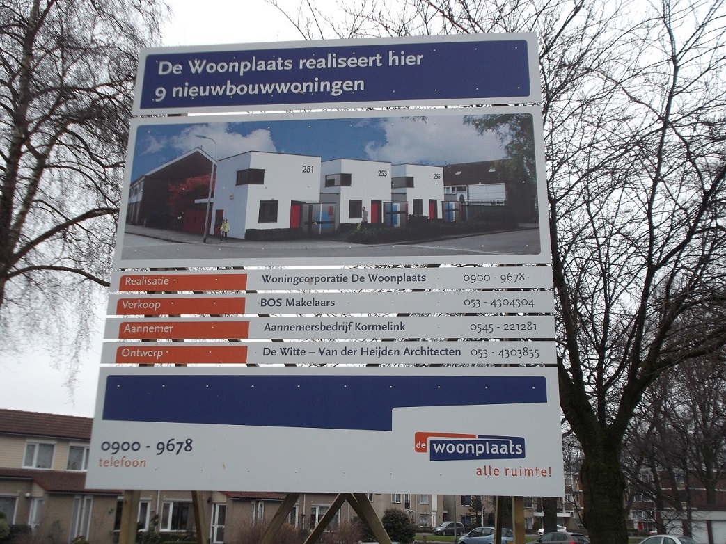 Op de hoek Elferinksweg en Adriaan Brouwerstraat wordt ook gebouwd. Volgens het bouwbord bouwt de Woonplaats hier 9 nieuwbouwwoingen.