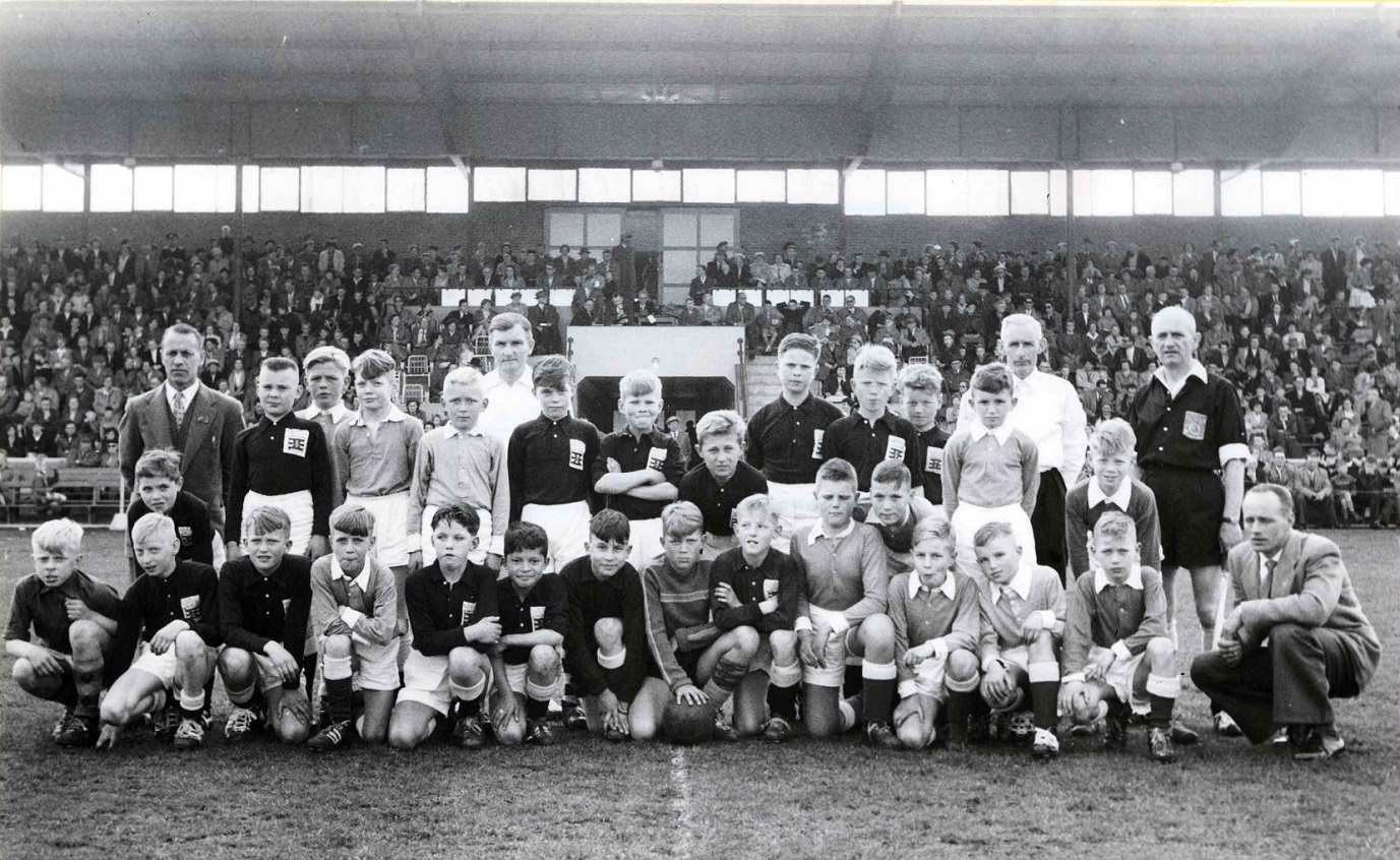Van de kantine van de Enschedese Boys op het sportpark Diekman heb ik geen foto's kunnen vinden. In 1972 verhuisde de Boys naar het terrein Diekman en werd er gespeeld op de bijvelden. Hier werd maar kort gespeeld want in 1974 – 1975 verhuisde de Boys naar sportcomplex Wesselerbrink Zuid waar het tot op heden speelt. Ik heb nog wel deze foto gevonden: J.J. van Deinselaan 30-4-1958 Pupillen van Sportclub Enschede en de Enschedese Boys in het Diekmanstadion.Veteraan schreef:Heeft niks met de bouw te maken, maar wel met suikerzakjes: