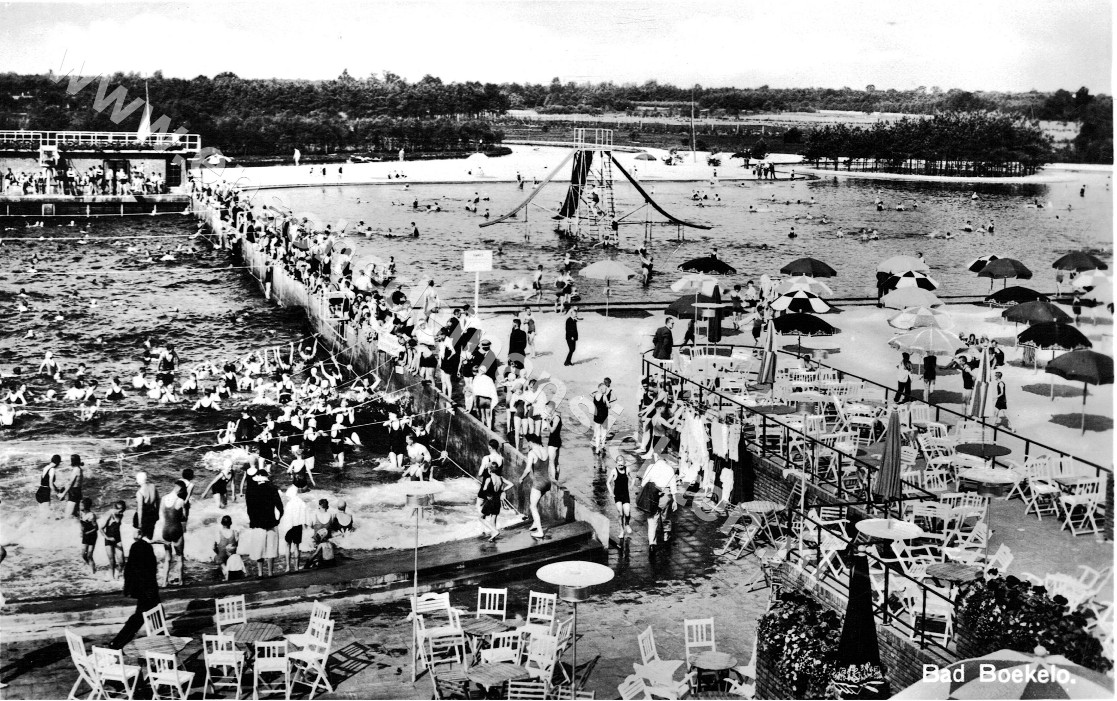 Eén van de eerste familieuitstapjes na de oorlog, was naar Bad Boekelo. Hoewel het bad al in 1934 was geopend door de K.N.Z (Koninklijke Nederlandse Zoutindustrie) om het personeel en de overige bevolking van Enschede te laten genieten, was er voor ons nog niet veel gelegenheid geweest om er naar toe te gaan. Maar vanaf zomer 1948 gingen we regelmatig met het gezin in de vakantie naar Bad Boekelo toe. We hadden er nog geen notie van dat je ook kon verbranden door eerst in dat zoute water te gaan en daarna in de zon te gaan bakken.