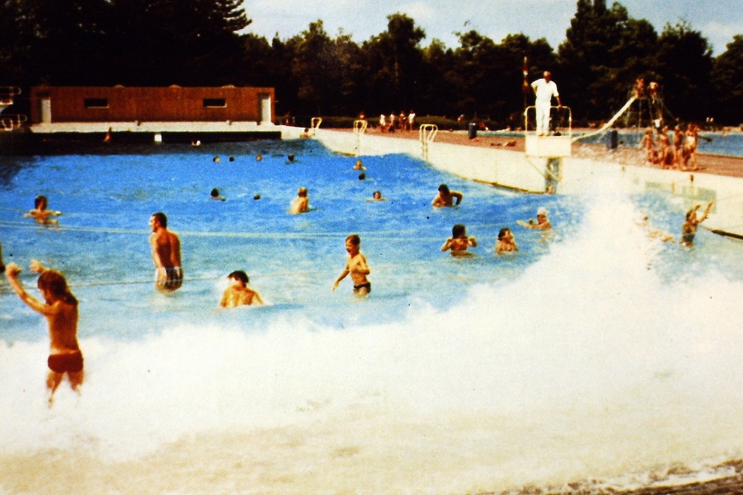En niemand van de familie had nog leren zwemmen, dus het was prachtig om in de golven te kunnen dobberen aan de gespannen touwen. Als de sirene begon te loeien, renden alle bezoekers naar het bad om een goed plekje aan de touwen te vinden. Het water begon als een echte zee minutenlang flink te golven en het was dolle pret.