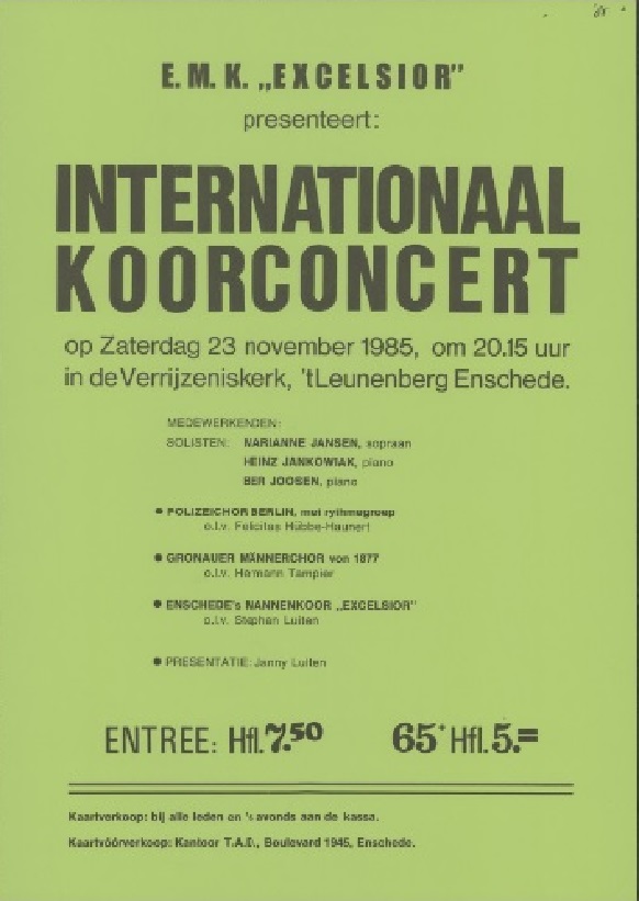 Aan het concert op 10 november verlenen de Theaterobers hun medewerking. Kaarten zijn verkrijgbaar door overmaken van 5 euro op NL25 INGB 0001 0208 83 ten name van Koninklijke Enschedese Leoharmonie o.v.v. jubileumtheaterconcert Leo. Dit bedrag is inclusief gratis koffie en vier amuses. Zie ook:
