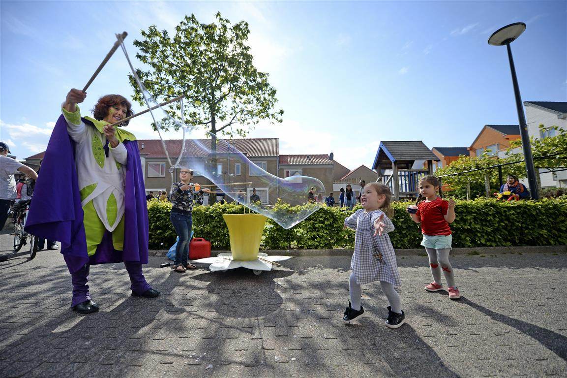 Een ijsbus, een melkbus, een wokbus. Een steltenloper. Een muzikaal trio. Geen moeite heeft De Woonplaats gespaard om de wijk Tattersall een feestje te bezorgen ter ere van de renovatie.
