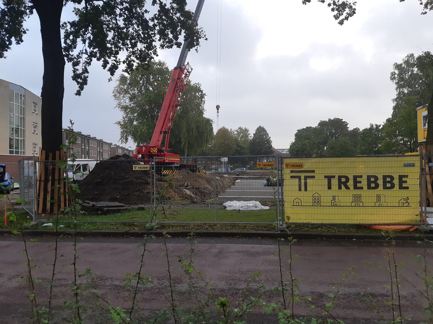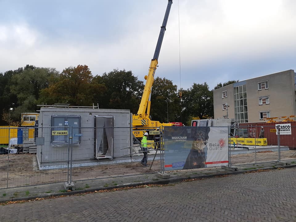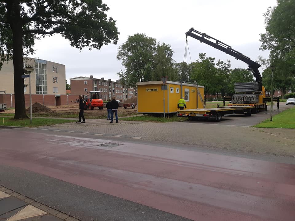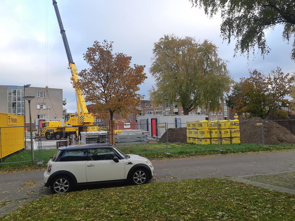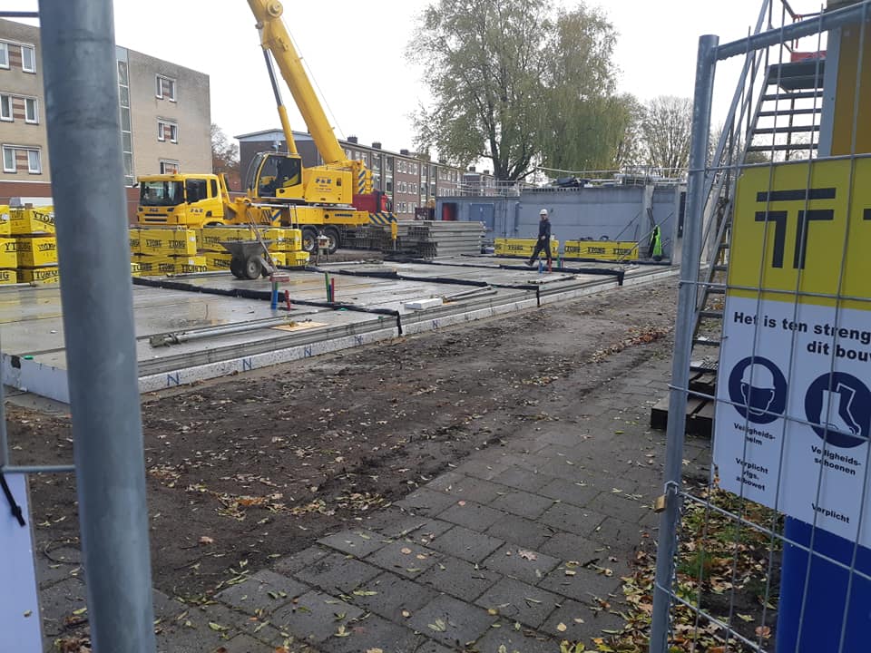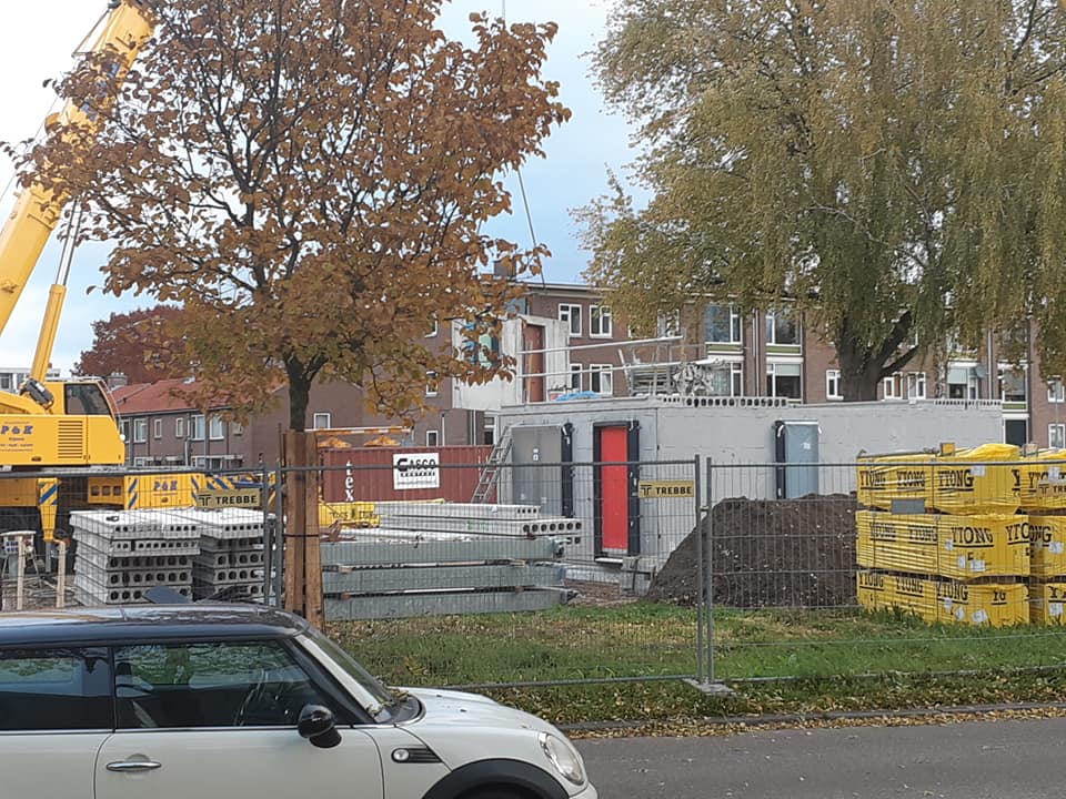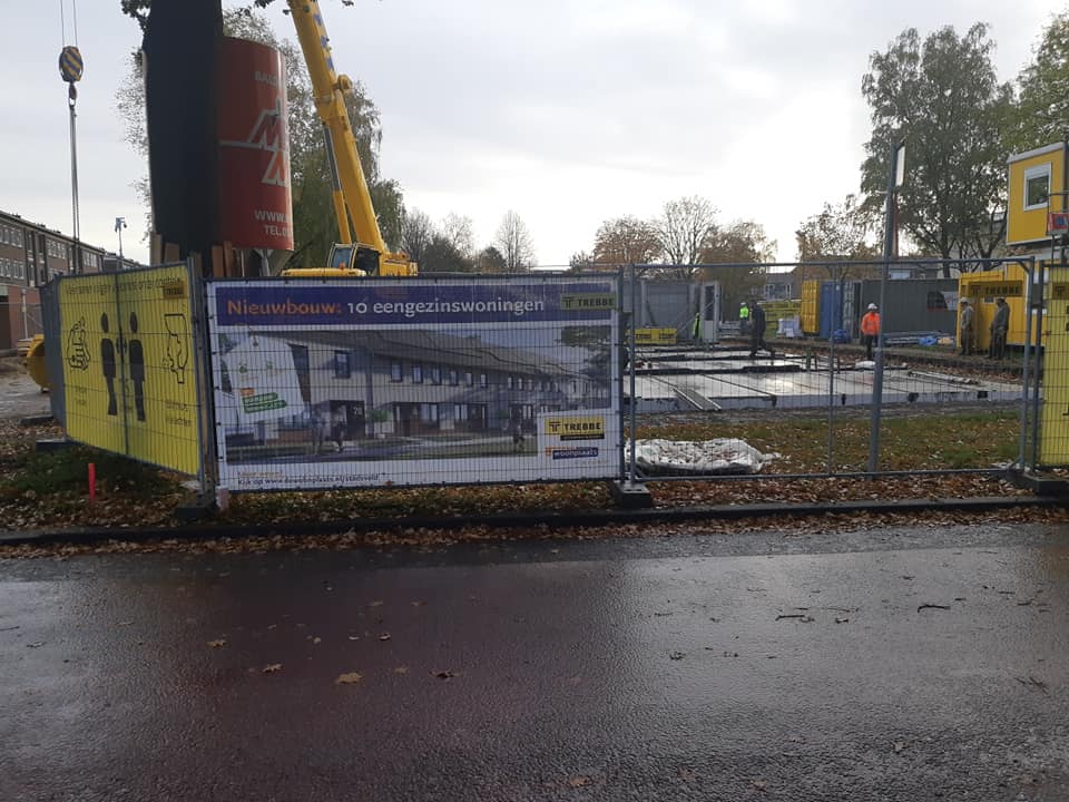 Vanmorgen is eindelijk begonnen met de voorbereiding van de bouw van de 10 woningen op de hoek Adriaen van Ostadestraat en Aert van der Neerstraat. Bij de voorlichting door woningcorporatie De Woonplaats en Aannemer Trebbe heb ik begrepen dat het prefabbouw betreft en dat de huizen in februari 2021 gereed moeten zijn.