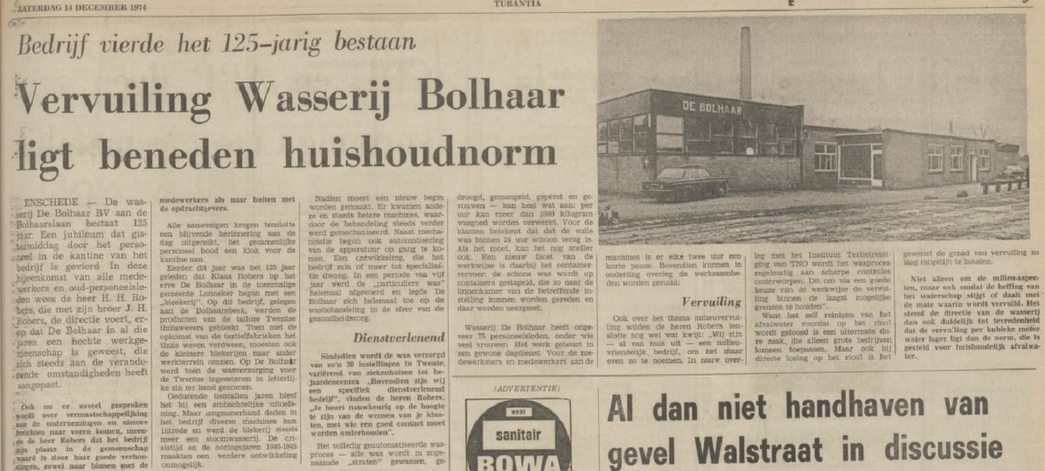 Bolhaarslaan 20 Wasserij De Bolhaar 125 jaar krantenbericht Tubantia 14-12-1974.jpg