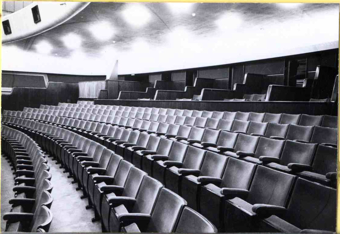 De grote zaal is er, voor zover ik weet, in twee uitvoeringen geweest; het origineel uit de jaren vijftig en de versie van na de verbouwing in 1983 (met die getrapte zijbalkonnetjes).