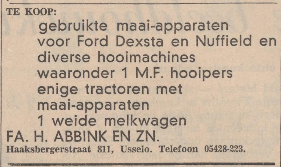 Haaksbergerstraat 811 Usselo Fa. H. Abbink en Zn advertentie Tubantia 26-5-1964.jpg