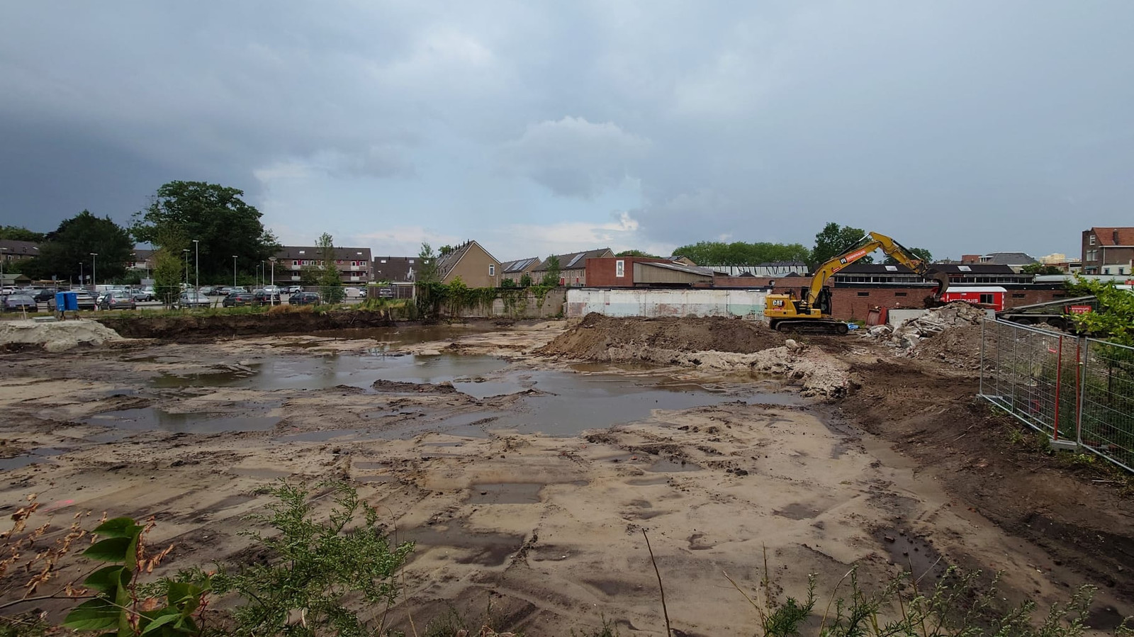 Het voormalige fabrieksterrein van Hintzbergen, met op de achtergrond de parkeerplaats van de Aldi. Hier worden 14 woningen gebouwd. © Erik Jan Jansen