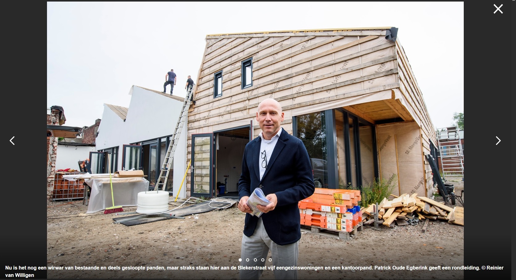 Het leek een nietszeggend stuk grond dat te klein is voor een nieuwbouwwijk en te groot voor een woonhuis. Maar Patrick Oude Egberink zag direct de potentie van dit gekke stukje Blekerstraat in Enschede. Nu bouwt hij er vijf woningen en een eigen kantoor. Dat is nog niet alles.