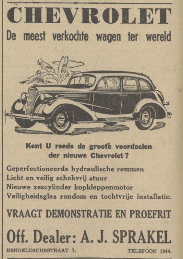 Hengelosestraat 1 Garage A.J. Sprakel advertentie Tubantia 1-5-1932