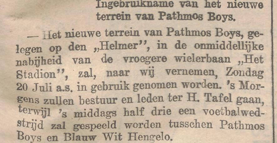 Stadionweg Pathmos Boys op het Helmer bij wielerbaan Het Stadion. krantenbericht Overijsselsch dagblad 12-7-1930