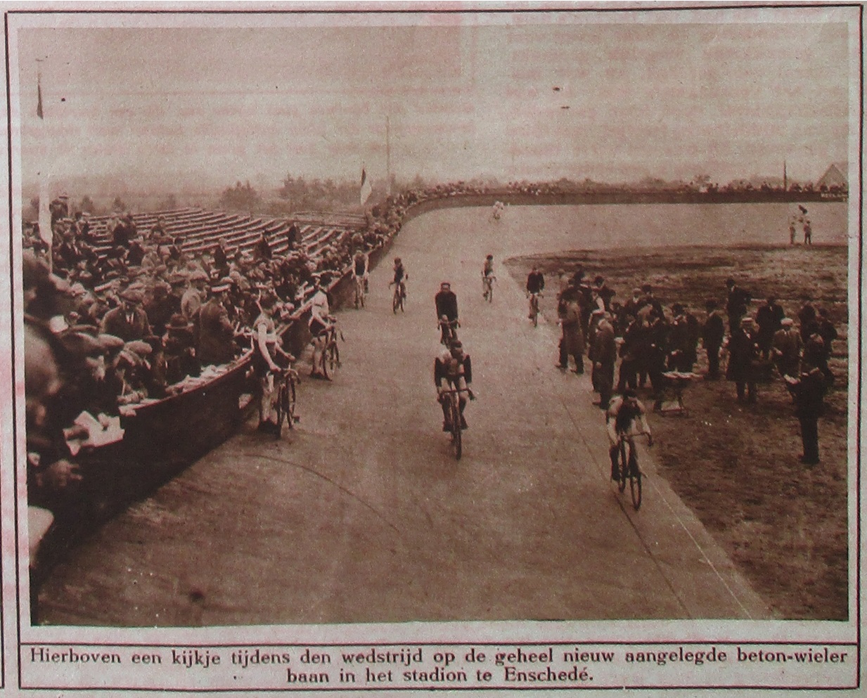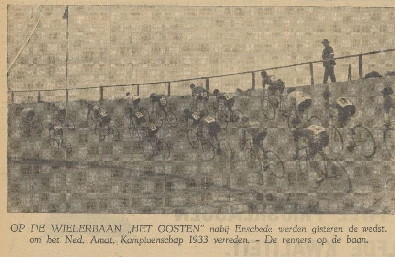 heropening — op 17 juli 1932 — van de wielerbaan in Usselo. Bij de wedstrijden waren steeds enkele duizenden vaste bezoekers. Maar mede door de economische toestanden — er waren veel werklozen — liep de publieke belangstelling in 1934 terug en raakte de baan al spoedig in verval.