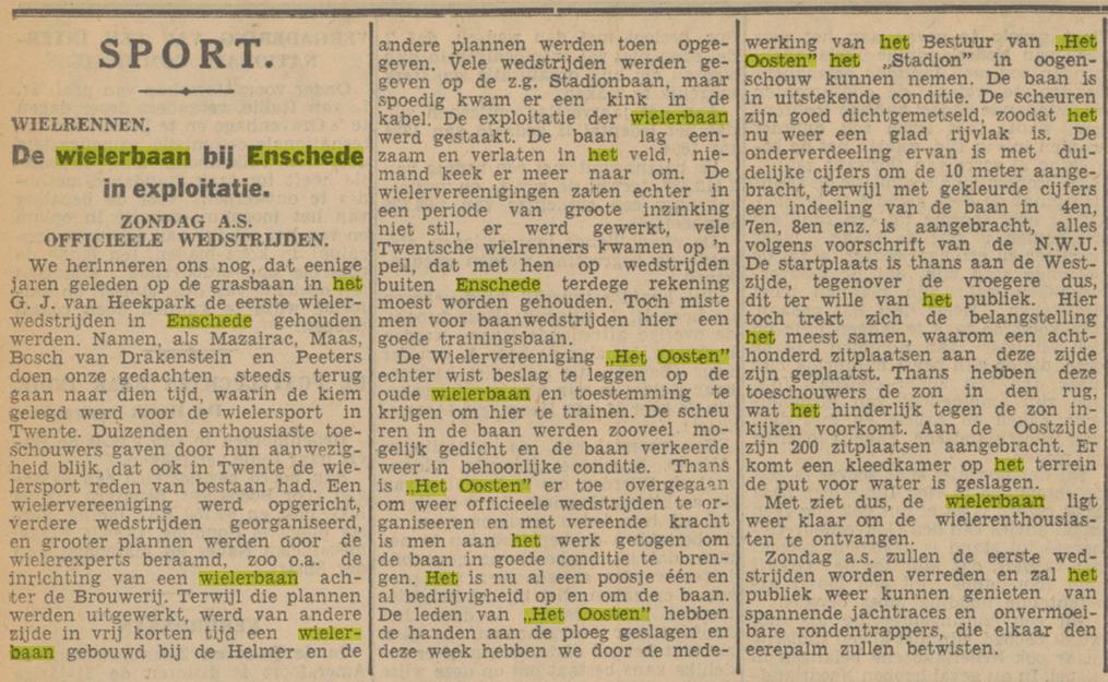 Stadionweg Pathmos Boys op het Helmer bij wielerbaan Het Stadion. krantenbericht Overijsselsch dagblad 12-7-1930.jpg