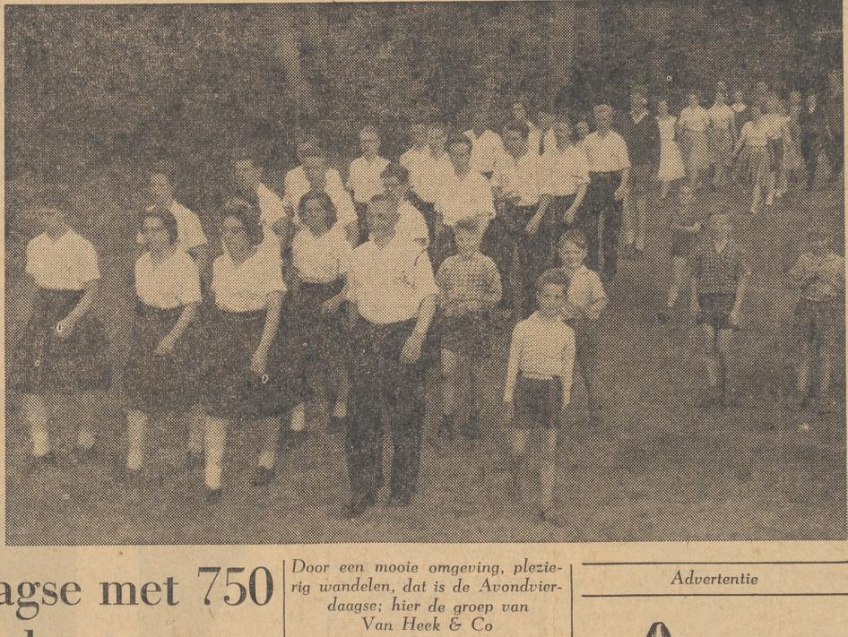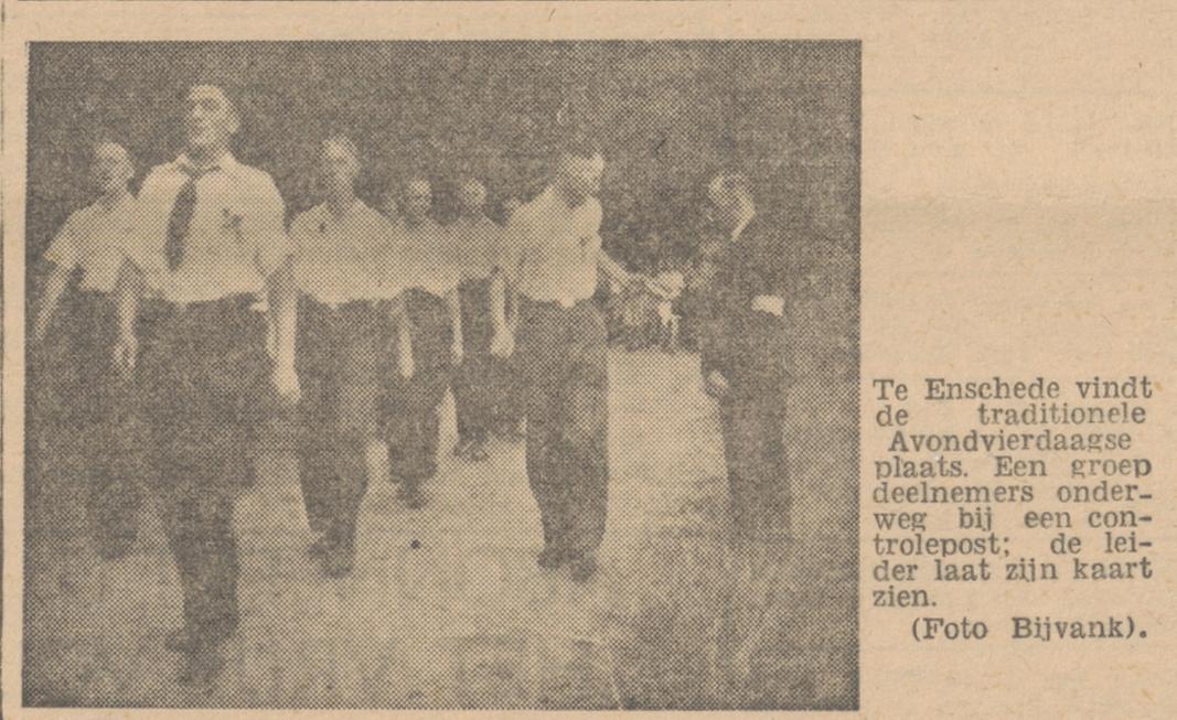 Avondvierdaagse Enschede 1954 krantenfoto Tubantia 23-6-1954