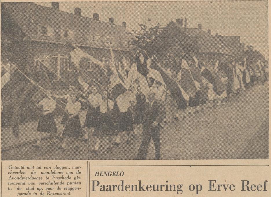 Rozenstraat avondvierdaagse Enschede krantenfoto Tubantia 23-6-1954